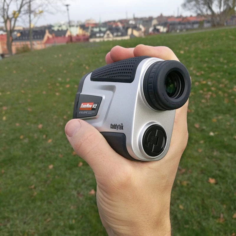 The CaddyView V2 JOLT + Slope is like nothing you’ve seen before from CaddyTek. “FlagSeeking” technology that comes with this Laser Rangefinder identifies the closest target to help you get your measurement to the flagstick no matter what’s behind the green and Jolts once the target is locked. It also features a slope mode, in which you get the distance compensated with the difference in slope. The patented mode switching makes it easy to toggle between slope and non-slope. The powerful 6x magnification also help you range subjects at a distance up to 800 yards easily and clearly. CaddyView V2 +Slope is large enough to use comfortably, and compact enough for easy storage. This new laser rangefinder from CaddyTek will be a powerful tool for managing your golf. Enjoy the game with CaddyTek
