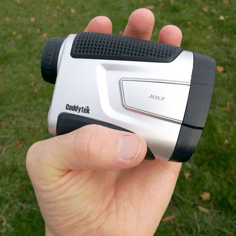 - When the CaddyView detects multiple targets in a very short period of time and decides to display the nearest target bas on the “FlagSeeking” technology, it will also “Jolt” to notify the user that the Flag or Stick is “locked in”. In other words, the Jolt function is an enhanced “FlagSeeking” technology.