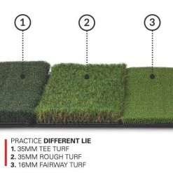 - UPGRADED YOUR GOLF MAT: Our Tri-Turf Portable Golf Hitting Mat allows you to practice on three turf styles for better results on the course!