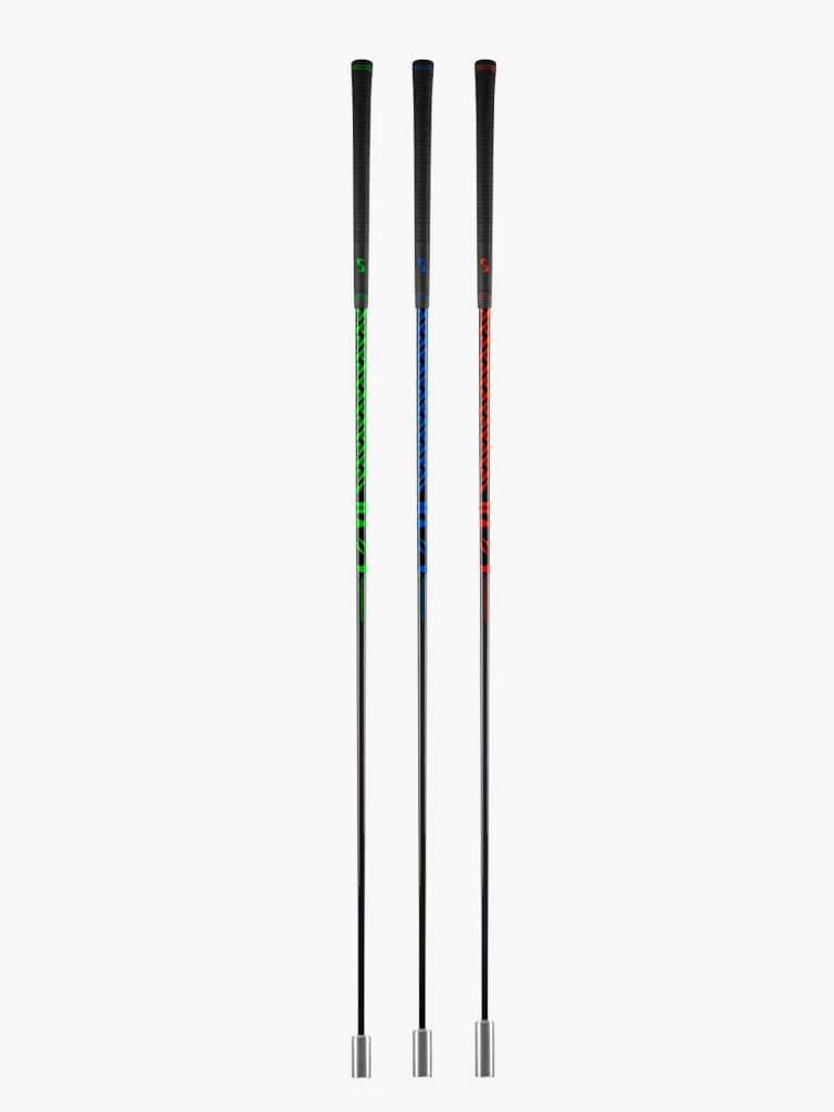 The SuperSpeed Golf Training System includes 3 specially weighted clubs. Two clubs are lighter than your driver (20 & 10% lighter) to get you moving fast, and the third club is slightly heavier (5%) than your driver to help you to move a heavier club faster. In overspeed training, the training always goes from light to heavy to push your nervous system to increase speed to the maximum.